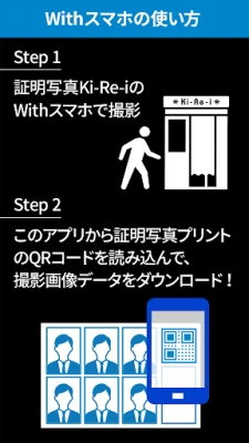 DNPの証明写真機「Ki-Re-i」の[Withスマホ]機能と「Ki-Re-i Photo」が連携。撮影した証明写真データをアプリでスマートに確認・管理。大切な一枚をいつでも手元に保持できます。