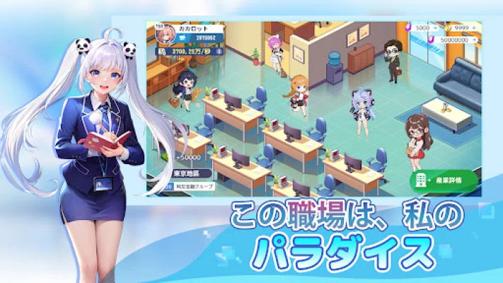 かわいい女の子たちがあなたの職場に続々登場!個性豊かな彼女たちとの出会いを楽しみ、賑やかなオフィスライフを体験できる癒やし系アプリです。彼女たちとの交流を深め、自分だけの理想の職場を作り上げてみませんか?
